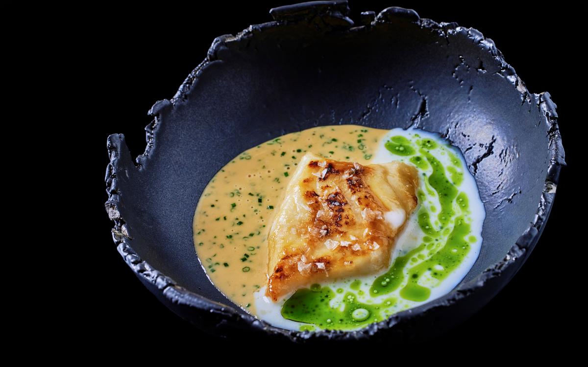 Kalbfleisch / Schalotte / geräucherter Kefir / Miso / Schnittlauch